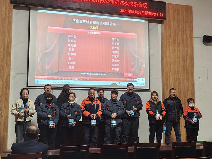 新岁翩然而至, 万象更新呈祥。伴随着2025年的到来,济南鑫光的第75次快乐会议也来到了我们身边。本次会议由综合办主持开展。首先进行的是领导讲话,本次讲话的是王总。王总对这一年以来的试验机制造做了总结,鼓励大家再接再厉,任重道远,在新到来的2025年里继续保持好的方面,努力争取更好的成绩。
